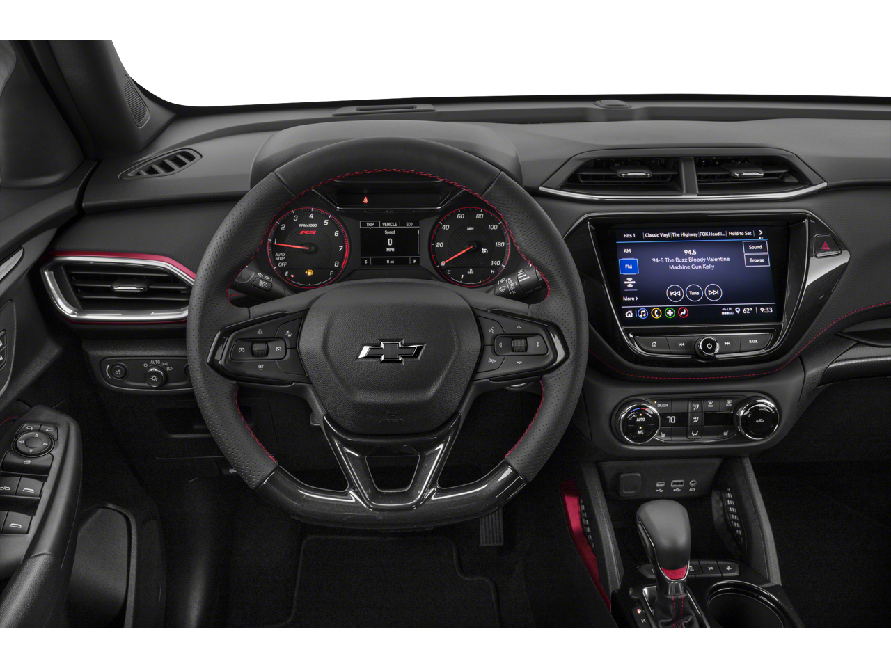 Step inside the 2023 TrailBlazer RS and experience the epitome of modern comfort and convenience. The Confidence II Package provides the added assurance of Rear Park Assist, while the Convenience Package includes features like automatic climate control, an 8 touchscreen display, and a 120-volt power outlet. Indulge in the warmth of the heated steering wheel and the sophisticated ambiance created by the driver and front passenger illuminated vanity mirrors.